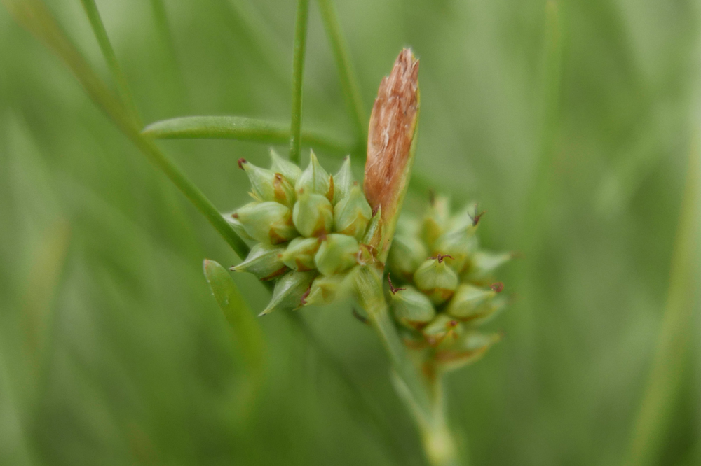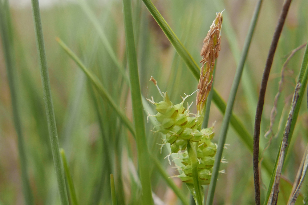 Deze zegge is klein en makkelijk over het hoofd te zien. Ze groeit op allerlei open plaatsen waar ondiepe grotere en kleinere plassen aan het opdrogen zijn. Dwergzegge is er één van een groepje kleine zeggen dat plantkundigen al jaren hoofdpijn, ruzie en verwarring bezorgt. De dwergzegge en de geelgroene zegge worden soms beschouwd als ondersoorten van één soort. Het is een rommeltje met boeken en webpagina’s uit verschillende landen en tijdperken met allerlei verschillende wetenschappelijke namen. Ik tref in het veld de dwergzegge vaker dan de geelgroene. Misschien is dat omdat ik toch vaak relatief dicht bij de kust op pad ben. Of misschien omdat op plekken die mijn aandacht trekken door leuke kleine russen, paranassia of zilte zegge ook vaak wel dwergzegge groeit.