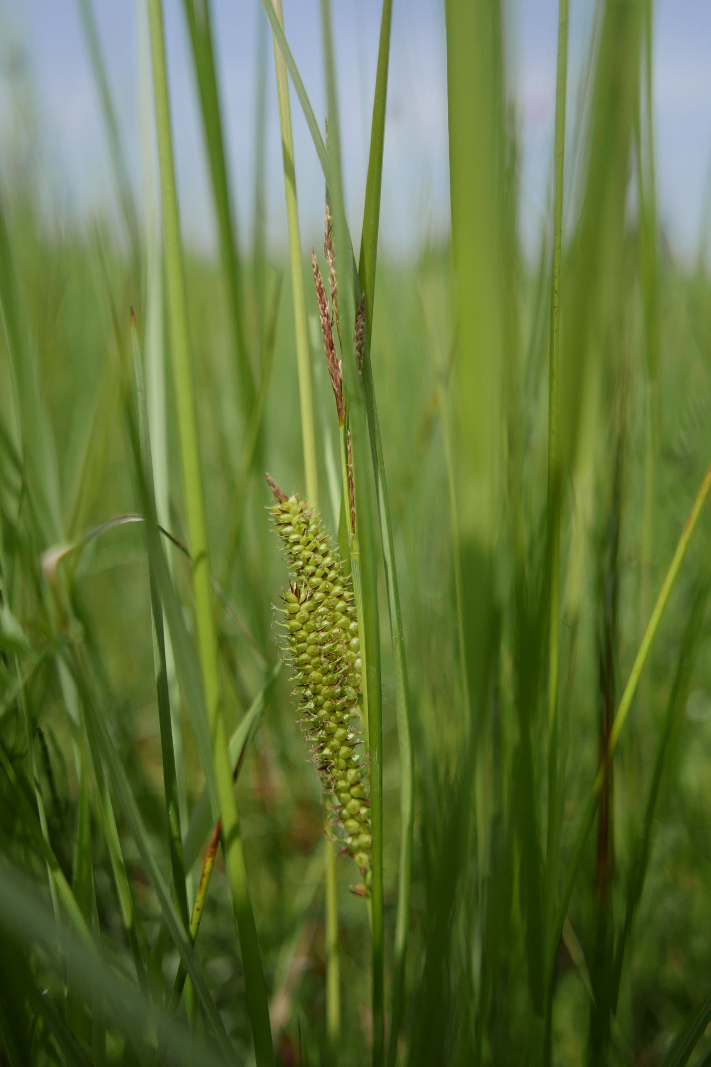 De blauwgrijze pollen van snavelzegge met de gelige vrouwelijke aren met opgeblazen urntjes zijn goed herkenbaar. De stomp driekantige stengel onderscheidt haar van blaaszegge die zeldzamer is in het noorden.